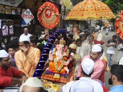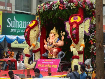 पालखी आणि फुलांच्या रथातून झाले मानाच्या गणपतींचे आगमन