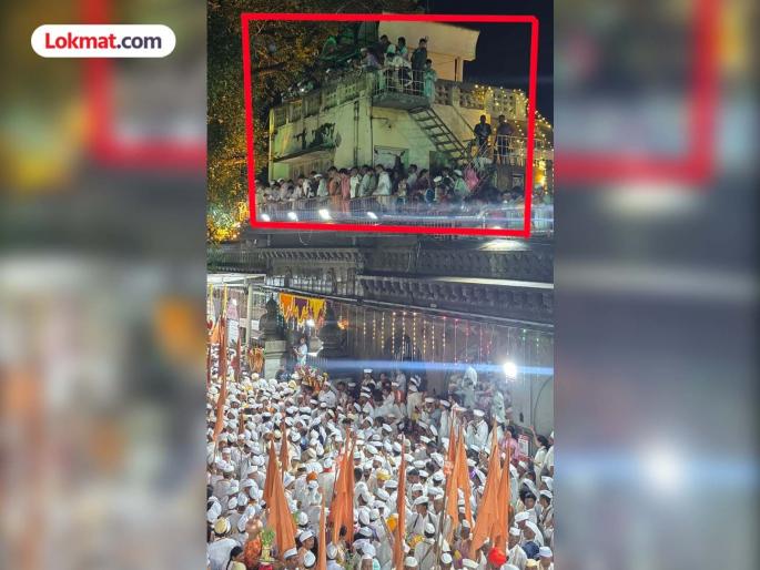 - भानुदास पऱ्हाडआळंदी : संत ज्ञानेश्वर महाराजांच्या आषाढी पायीवारी पालखीचे गुरुवारी (दि. १९) रात्री पावणे अकराच्या सुमारास प्रस्थान झाले. दरवर्षी या प्रस्थान सोहळ्याला मानाच्या दिंड्यांमधील वारकऱ्यांना प्रवेश दिला जात असतो. मात्र या वारकऱ्यांव्यतिरिक्त प्रस्थान सोहळ्याला इतर वशिलेबाजांची संख्या जास्त असते. परिणामी देऊळवाड्याभोवती असलेल्या टेरेसवर प्रचंड गर्दी होते. टेरेसवर उभे राहिलेले 'हौसे' लोक रेलिंगवर भार देऊन प्रस्थान सोहळा पाहत असतात. सदरचा भार लोखंडी कठड्यांना सहन झाला नाही तर अचानक हे रेलिंग तुटून मोठी दुर्घटना होण्याची शक्यता निर्माण होत आहे. माऊलींचा आषाढी पायी वारी प्रस्थान सोहळ्यात सहभागी होण्यासाठी राज्याच्या कानाकोपऱ्यातून लाखो वारकरी अलंकापुरीत दाखल होत असतात. आळंदीत आलेला प्रत्येक वारकऱ्याला माऊलींचा प्रस्थान सोहळा स्वतःच्या नयनांनी अनुभवायची इच्छा असते. मात्र देऊळवाड्यातील मर्यादित जागेमुळे तो प्रत्येकाला मंदिरात उपस्थित राहून पाहणे शक्य होत नाही. यावर मंदिर प्रशासनाने गर्दीवर नियंत्रण आणण्यासाठी नियमावली तयार केली आहे.प्रस्थान सोहळ्याच्या दिवशी मंदिरात 'श्रीं'च्या रथापुढील २० आणि रथामागील २७ यांसह अन्य काही उपदिंड्यांतील प्रत्येकी ९० वारकरी, मीडिया, मानकरी तसेच प्रस्थान संबंधित घटकांना (पासधारक) मंदिरात प्रवेश दिला जातो. गतवर्षी जिल्हा सत्र न्यायाधीश महेंद्र महाजन यांच्या अध्यक्षतेखाली दिंडी प्रमुख, फडकरी, मानकरी, चोपदार, महसूल विभाग, पोलीस प्रशासन व आळंदी देवस्थानचे पदाधिकाऱ्यांच्या बैठकीत हा निर्णय घेतला होता. यंदाही हाच नियम कायम होता. प्रस्थान सोहळ्यापूर्वी पोलिसांकडून मंदिर रिकामे केले जाते. तरीसुद्धा अनेक 'वशिलेबाज' मंदिरात राहतात. सदरचे लोक हे धोकादायकपणे मंदिरासभोवतालच्या टेरेसवर उभे राहतात. प्रस्थान सोहळ्याच्या वेळी वारकरी देहभान विसरून नाचत असतात. अशातच एखाद्या वेळी रेलिंग तुटले तर टेरेसवरचे 'हौसे' वारकऱ्यांच्या अंगावर पडून दुर्घटना होऊ शकते. एकीकडे मंदिर प्रवेशासाठी स्थानिकांना वाद घालावा लागतो. मात्र दुसरीकडे 'वशिलेबाज' मोठ्या थाटात मंदिरात प्रवेश करत असल्याची सत्यस्थिती आहे. यावर वेळीच नियंत्रण आणणे गरजेचे असल्याचे स्थानिक नागरिकांनी सांगितले.