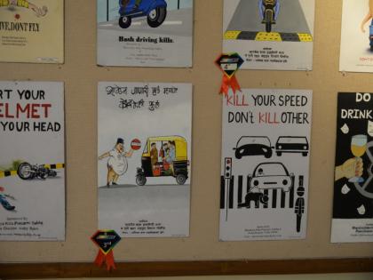या प्रदर्शनामध्ये एकूण 420 चित्रे मांडण्यात आली आहेत. या चित्रांच्या माध्यमातून वाहतूकीचे नियम पाळण्याबाबत जनजागृती करण्यात आली आहे. यात हेल्मेट न घातल्यामुळे हाेणारे नुकसान, दारु पिऊन गाडी चालविल्याने निर्माण हाेणारे धाेके त्याचबराेबर इतर नियम माेडल्याने हाेणारे नुकसान चित्रांच्या माध्यमातून दाखविण्यात आले आहे. 'शामच नसेल तर शामची आई काय करणार?' असे कॅप्शन लिहून काढण्यात आलेले चित्र सर्वांचे लक्ष वेधून घेत आहे. त्याचबराेबर 'ते निघून गेले ज्यांना घाई हाेती' हे वाक्य असलेल्या चित्रातून देखील वाहने सावकाश चालविण्याचा संदेश देण्यात आला आहे. या प्रदर्शनाचे उद्घाटन पाेलीस आयुक्त डाॅ. के. व्यंकटेशम यांच्या हस्ते झाले, यावेळी वाहतूक उपायुक्त तेजस्वी सातपुते उपस्थित हाेत्या.