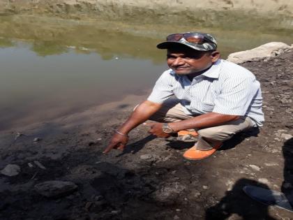 वनरक्षक स्वाती खेडकर व वनसेवक संभाजी धनावडे यांच्या पथकाने मंगळवारी या ठिकाणाची पाहणी केली. प्राणीमित्र अभिषेक खंडेलवाल व समर्थगड फौंडेशनचे कर्मचारी उपस्थित होते.तळ्याच्या काठाजवळ बिबट्याच्या पावलांचे ठसे वन विभागाच्या पथकाला आढळले. अंदाजे तीन वर्षे वयाचा हा बिबट्या असल्याचे अधिकाऱ्यांनी सांगितले. याच बरोबर तळ्यावर तरस, भेकर, काळवीट, रानडुक्कर व मोराच्या पावलांचे ठसे आढळून आले. वाढता उन्हाळा व जंगलातील पाण्याच्या दुर्भिक्षामुळे बिबट्या तळ्यावर येत असल्याचे वनाधिकाऱ्यांनी सांगितले.