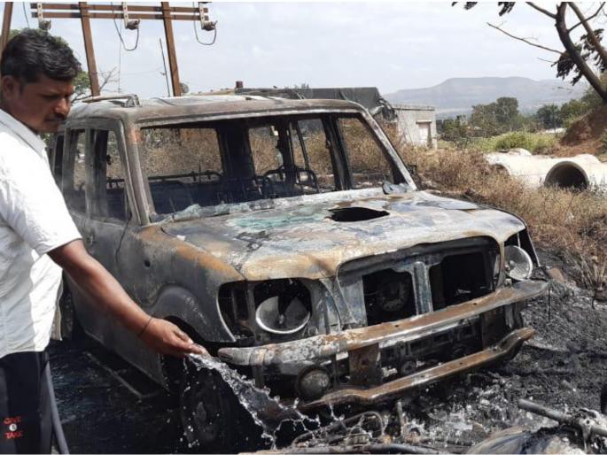 मुगावडे रस्त्यावर चाले येथे वहाळे व चंद्रस या परिवाराचे लग्न होते. या मंगल कार्यालयात फटाके वाजविण्यात आले. या फटाक्यांमुळे खाली असलेल्या वाळलेल्या गवताने पेट घेतला. ही आग वाढून गवतावर लावलेल्या दोन चारचाकी व पाच दुचाकींनी पेट घेतला. गाड्यांना अचानक आग लागल्यामुळे एकच गोंधळ उडाला. नागरिकांनी तत्काळ अग्निशमन दलास फोन करून घटनेची माहिती दिली. अग्नीशामक दल येण्यापुर्वीच नागरिकांनी तत्परता दाखवत गाड्यांना लागलेली आग पाण्याने विझवण्याचा प्रयत्न केला, पण त्या गाड्या जळून संपूर्ण खाक झाल्या होत्या. आग आटोक्यात आल्याने शेजारी उभ्या केलेल्या दुचाकी व चारचाकी गाड्या आगीतून बचावल्या.