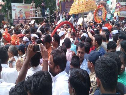 गणपती बाप्पा मोरया, मंगल मूर्ति मोरयाचा जयघोष झाल्या नंतर ऐतिहासिक मिरवणुकीला सुरुवात झाली. मिरवणुकी समोर कला अकादमीच्या कलाकारांनी रंगोळीच्या पायघड्या घातल्या होत्या. तसेच चौका-चौकात भव्य रंगोळी साकारण्यात आली होती. लक्ष्मी रस्ता या मुख्य मिरवणुक मार्गावर बाप्पाच्या दर्शनासाठी दुतर्फा गर्दी झाली होती. तसेच ढोल ताशा पथकानी केलेले वादन अन प्रात्यक्षिकाना उत्स्फुर्त दाद मिळत होती. कडक उन्हातही मिरवणुकीतील उत्साह उत्तरोत्तर वाढतच गेला.