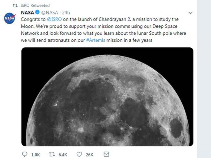 अंतराळ विज्ञान आणि संशोधनात चमकदार कामगिरी करणाऱ्या भारतीय अंतराळ संशोधन संस्था अर्थात इस्रोच्या शिरपेचात अजून एक मानाचा तुरा खोवला गेला आहे. सोमवार 22 मे रोजी दुपारी 2.43 मिनिटांनी चंद्राच्या दिशेने झेपावलेल्या जीएसएलव्ही एमके-3 एम-1 या प्रक्षेपकाने यशस्वीरीत्या उड्डाण करून चांद्रयान-2 ला यशस्वीरीत्या पृथ्वीच्या कक्षेत पोहोचवले आहे. त्यानंतर इस्रोने चांद्रयान-2 चे उड्डाण यशस्वी झाले असून, हे यान पृथ्वीच्या कक्षेत यशस्वीरीत्या पोहोचल्याची घोषणा केली आहे. इस्रोच्या या कामगिरीचे जगप्रख्यात अंतराळ संशोधन संस्था असलेल्या नासानेही अभिनंदन केले. मात्र, नासाने आपल्या ट्विटरमध्येही स्वत:चीच पाठ थोपविण्याचा प्रयत्न केला होता. अमेरिकन अंतराळ संस्था नासाने भारतीय अंतराळ संस्था इस्रोचे अभिनंदन केले. मात्र, नासाने या ट्विटमध्येही स्वत:चेच गोडवे गायल्याचं दिसून आलं. त्यानंतर, भारतीय ट्विटर युजर्संने नासाला चांगलेच सुनावले. त्यापैकी, एका पुणेकर ट्विटरच्या ट्विटला नासाने उत्तर दिले आहे. विशेष म्हणजे हे ट्विटर अकाऊंट खरे आहे, की नाही हेही अद्याप माहित नाही. पण, नासानेही पुणेकर युवकाची दखल घेत अभिनंदन ट्विटचा खुलासा केला आहे.