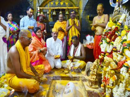 जेजुरी: खासदार छत्रपती संभाजीराजे व पत्नी संयोगीताराजे यांच्या लग्नाचा गुरुवारी ( दि. २८ ) वाढदिवस आहे. याच निमित्ताने राजे आणि त्यांच्या पत्नी सह देवदर्शनासाठी जेजुरी गडावर आले होते. लग्नानंतर आजतागायत त्यांनी जेजुरी वारी झालेली नव्हती. मात्र गुरुवारी कुलदैवताचे दर्शन घेत त्यांनी विधिवत कुलधर्म कुळाचाराचे धार्मिक विधी पूर्ण केले.