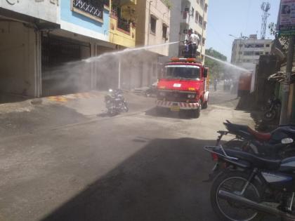 मुख्य अग्निशमन अधिकारी देवेंद्र पोटफोडे,अग्निशमन अधिकारी सुजित पाटील यांच्या मार्गदर्शनाखाली अग्निशमन दलाचे जवानांनी १५ किलोमीटरपर्यंत फवारणी केली. यावेळी अत्यावश्यक दुकाने वगळता सर्व दुकाने बंद ठेवण्यात आली होती.