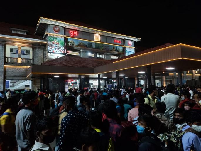 पुणे: राज्यात कोरोना ग्रस्तांची संख्या मोठ्या प्रमाणात वाढत आहे. त्यावर नियंत्रण मिळवण्यासाठी लॉकडाऊन शिवाय पर्याय नाही असे मुख्यमंत्री उद्धव ठाकरे यांनी स्पष्ट केले आहे. त्यामुळे राज्यात १५ एप्रिल ते ३० एप्रिल पर्यंत लॉक डाऊन लागण्याची शक्यता आहे. त्याच पार्श्वभूमीवर आपले घर गाठण्याच्या उद्देशाने पुणे रेल्वे स्थानकात प्रवाशांची प्रचंड गर्दी जमा झाली आहे. बहुतांश नागरिक हे पर राज्यातील आहे. राज्यावर लॉकडाऊनचे सावट घोंघावत असल्याने सगळीकडे चिंतेचे वातावरण आहे. तसेच परप्रांतीय कामगारांमध्ये तर लॉकडाऊनच्या भीतीने मिळेल त्या मार्गाने पुन्हा एकदा घर गाठण्यासाठी प्रयत्न पावले उचलली आहे. त्यामुळे पुणे स्टेशनवर प्रवाशांनी गर्दी करायला सुरुवात केली आहे.