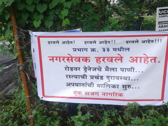 'हरवले अाहेत ! हरवले अाहेत !! हरवले अाहेत !!! प्रभाग क्र. 33 मधील नगरसेवक हरवले अाहेत. राेडवर ड्रेनेजचे मैला पाणी... रस्त्यांची प्रचंड दुरावस्था...अपघातांची मालिका सुरु...एक सजग नागरिक असा मजकूर बॅनरवर लिहिण्यात अाला अाहे.' गेल्या अनेक वर्षांमध्ये पुण्याची लाेकसंख्या प्रचंड वाढली अाहे. त्याचबराेबर पुणे महानगरपालिकेच्या हद्दीत अनेक अाजूबाजूच्या गावांचा समावेश करण्यात अाला अाहे. लाेकसंख्यावाढीमुळे अनेक नागरी समस्या निर्माण झाल्या अाहेत. नगरसेवक निवडणूकीच्यावेळी मतं मागायला येतात परंतु निवडून अाल्यानंतर पुढील पाच वर्षे फिरकतही नाहीत अशी तक्रार अनेकजण करत असतात. पुण्यातील प्रभाग क्रं 33 हा वडगाव धायरी-सनसिटीचा भाग अाहे. या भागात रस्त्यांची माेठ्याप्रमाणावर दुरावस्था झाली अाहे. त्याचबराेबर काही दिवसांपासून मैलापाणी रस्त्यावर येत अाहे. परंतु या समस्यांकडे येथील नगरसेवक लक्ष देत नसल्याचा अाराेप करत येथील नागरिकांनी थेट नगरसेवक हरविल्याचे फलक या भागात लावले अाहेत.