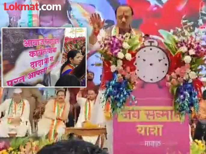 पुणे : उपमुख्यमंत्री अजित पवार (Ajit Pawar) यांची राज्यातून जनसन्मान यात्रा सुरु आहे. कालपासून ही यात्रा पुण्यात दाखल झाली आहे. आज ती मावळात पोहोचल्यावर सभेचे आयोजन करण्यात आले होते. य सभेत अजित पवारांचे भाषण सुरु असताना एका कार्यकर्त्याने त्यांना विनवणी केल्याचे समोर आले आहे. 'दादा, आपल्या राष्ट्रवादीत परत या ना', कार्यकर्त्याने भर सभेत अजितदादांकडे विनंती केली आहे.