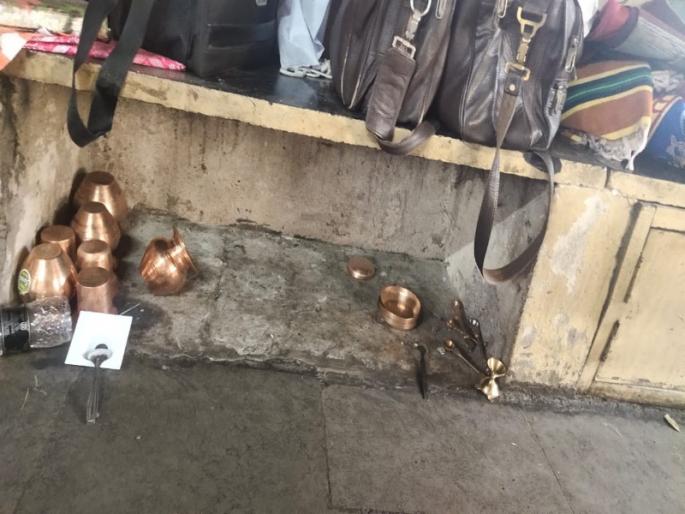 पुणे: आज सकाळी ओंकारेश्वर घाटावरील हॉलमध्ये असणाऱ्या तांबे, चांदी, पितळ आदी भांडयाची चोरी झाल्याची धक्कादायक माहिती समोर आली आहे. घाटावरील गुरुजी प्रशांत मोघे यांनी लोकमतशी बोलताना सांगितले आहे. हॉलचे शटर उचकटून तेथे चांदी, तांबा व पितळाचे सुमारे ४० तांबे,४० ताम्हण, पळी भांड्याचे २० सेट, पराती पातेले, चांदीचा तांब्या,3 भांडी,2 ताम्हण चांदीचे आणि एक पळी, येवढे साहित्य चोरीला गेल्याचे यावेळी ते म्हणाले आहेत.