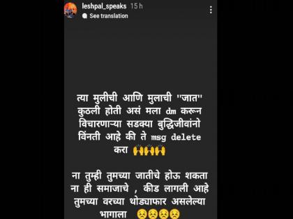 लेशपाल जवळगे इन्स्टाग्राम स्टोरीमध्ये सांगतोय की, “त्या मुलीची आणि मुलाची जात कुठली होती असं मला DM करून विचारणाऱ्या सडक्या बुद्धीजीवांनो विनंती आहे की ते मेसेज डिलिट करा. ना तुम्ही तुमच्या जातीचे होऊ शकता. ना ही समाजाचे. कीड लागली आहे तुमच्या वरचा थोड्याफार असलेल्या भागाला.”