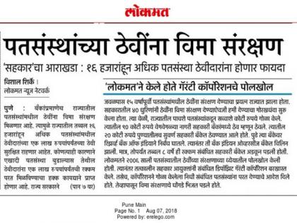 बँकांप्रमाणेच राज्यातील पतसंस्थांमधील ठेवींना विमा संरक्षण मिळणार असल्याचे वृत्त लोकमतने ७ आॅगस्ट रोजी प्रसिद्ध केले होते. या योजनेची प्रत्यक्ष अंमलबजावणी होणार असल्याने, राष्ट्रीय कृत, नागरी सहकारी, शेड्युल्ड, जिल्हा सहकारी अशा सर्व प्रकारच्या बँकांप्रमाणेच पतसंस्थांमधील ठेवींना संरक्षण प्राप्त होणार आहे.