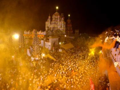 देवसंस्थानचे विश्वस्त संदीप जगताप, तुषार सहाणे, शिवराज झगडे व पंकज निकुडे उपस्थित होते. पहाटे ६ वाजता उत्सवमूर्तीच्या पालखी सोहळ्याला प्रारंभ झाला. गडकोटातील प्रमुख मंदिराच्या प्रदक्षिणेनंतर भंडारगृहातील श्रीखंडोबा व म्हाळसादेवींची उत्सवमूर्ती पालखीत ठेवण्यात आली. निशाण, अश्व, चामरे, आबदानी, सनई चौघडा, तसेच सोलो वादनाच्या मंगल सुरात सोहळा सुरू झाला. अत्यंत उत्साहात पालखीचे खांदेकरी, मानकरी पालखीला खांद्यावर घेऊन गडकोटातून बाहेर पडत होते. यावेळी उपस्थित भाविकांकडून देवाचा जयघोष सुरू होता, तर भंडार-खोबºयाची मुक्त हस्ताने उधळण होत होती. विद्युत प्रकाशझोतातील सोहळ्यावर भंडाऱ्याची होणारी उधळण सोन्याच्या जेजुरीचा अनुभव देत होती.