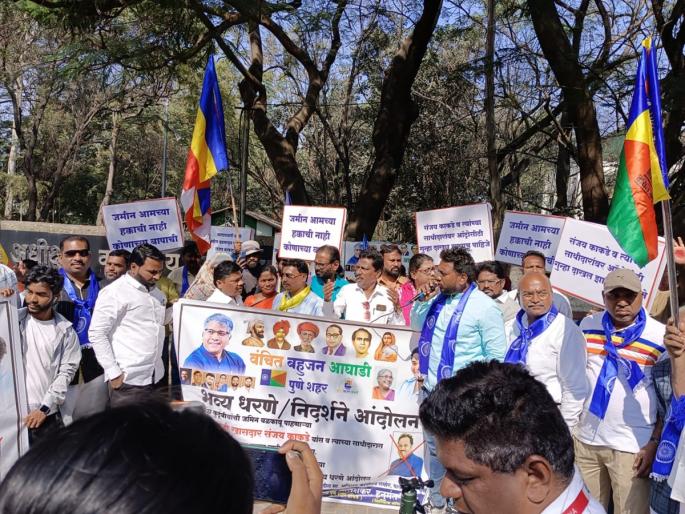 पुणे : माजी खासदार संजय काकडे यांच्यावर ॲट्रॉसिटी कायद्यान्वये गुन्हा दाखल करावा, या मागणीसाठी वंचित बहुजन आघाडीच्या वतीने आंदाेलन करण्यात आले. पुणे ग्रामीण पोलिस अधीक्षक कार्यालयासमोर गुरुवारी सकाळी हे धरणे आंदोलन करण्यात आले.