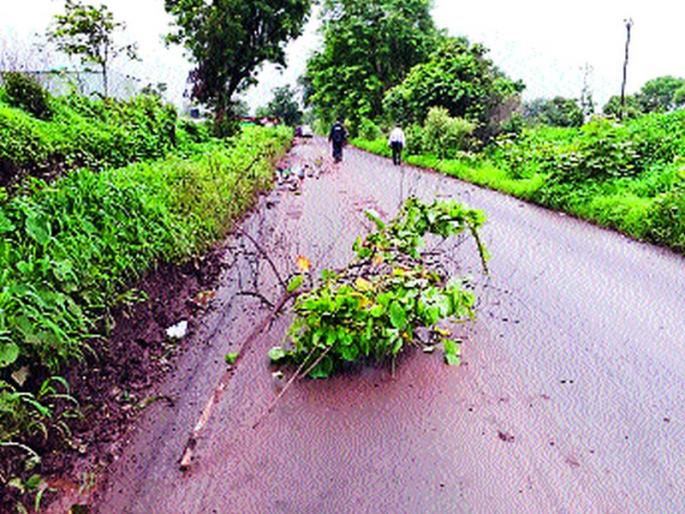 भोर : भोर-कापूरव्होळ मार्गावर ग्रामपंचायती डिजिटल करण्यासाठी शासनाकडून आॅप्टिकल फायबर केबल टाकण्यासाठी रस्त्यांच्या साईडपट्ट्या उकरून माती रस्त्यावर टाकण्यात आली होती. हे खड्डे बुजविल्यानंतर माती रस्त्यावरच राहिली असून पावसाच्या पाण्यामुळे रस्ता निसरडा झाल्याने शुक्रवारी जवळपास ७ ते ८ दुचाकी घसरून त्यांचा अपघात झाले. काही ठिकाणी तोडलेली झाडे रस्त्यावरच टाकण्यात आली आहेत. तर, रस्त्याच्या बाजूंची गटारेही खराब झाल्यामुळे खोदण्यात आलेल्या चारीत गाड्या अडकून पडल्या आहेत. कामाची मुदत गेल्या वर्षी पावसाळ्यात संपली असून दुसरा पावसाळा सुरू होऊन काम पूर्ण झालेले नाही. त्यामुळे नागरिक नाराजी व्यक्त करत आहेत.२०१७ पासून भोर तालुक्यातील ग्रामपंचायती डिजीटल करण्यासाठी भारत दूरसंचार निगम लिमिटेड (टेलिफोन)मार्फत काम सुरू आहे. यामुळे ग्रामंचायतीत वीजबिल, विविध प्रकारचे दाखले, फोन बिल व ग्रामपंचायती अद्ययावत होणार आहेत. या कामासाठी रस्त्याशेजारील जमिनीत सुमारे ५ फूट खोल खड्डा खणून त्यात पाईप व नंतर आॅप्टिकल वायर टाकली जात आहे. मात्र, अनेक ठिकाणी फक्त पाईपच गाडला असून वायर टाकण्यासाठी अर्धा किलोमीटरवर खड्डे ठेवले आहेत. यामुळे वाहतुकीला अडथळा होत आहे. मातीमुळे साईटपट्ट्या व गटारे बुजली आहेत. काही ठिकाणी मार्गात येणारी झाडे तोडलेली असून खड्डे चांगल्या पद्धतीने बजुवले जात नाहीत. जमिनीत खड्डा काढताना तो पाच फूट काढला जात नसून मागील वर्षापासून हे काम रेंगाळले आहे. सन २०१७ पर्यंतच हे काम पूर्ण करण्याची मुदत होती; मात्र मागचा पावसाळा संपून दुसरा पावसाळा आला तरी ही कामे प्रलंबित आहेत. .