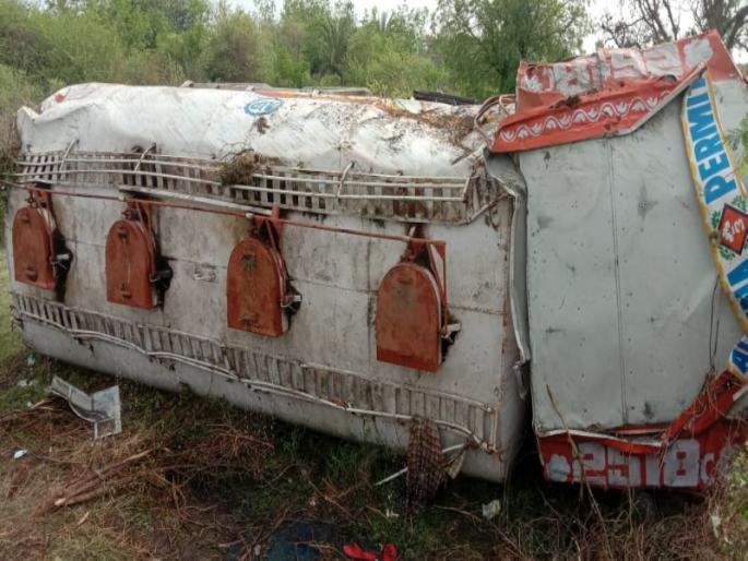 ठळक मुद्देडिझेल वाहतूक करणारा टँकर पलटीअपघातात वाहन चालक किरकोळ व अन्य दोनजण गंभीर जखमी