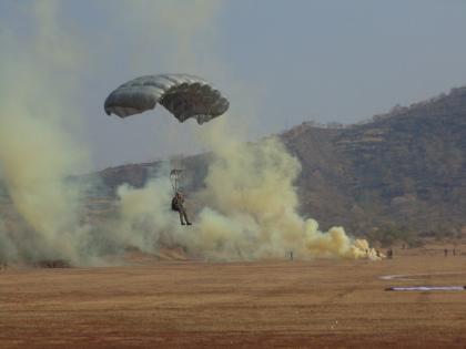 हवाई दलाच्या एन ३२ विमानातून तब्बल ८ हजार तसेच १२०० फुटावरून उडी मारत लष्कराच्या पॅराट्रूपर्स, निवृत्त अधिकारी तसेच हवाई दलाच्या आकाश गंगा पथकाच्या जंपर्सनी दिघी येथील बॉम्बे सॅपर्सच्या ट्रेनिंग बटालीयन येथे चित्तथरारक कवायाती केल्या.