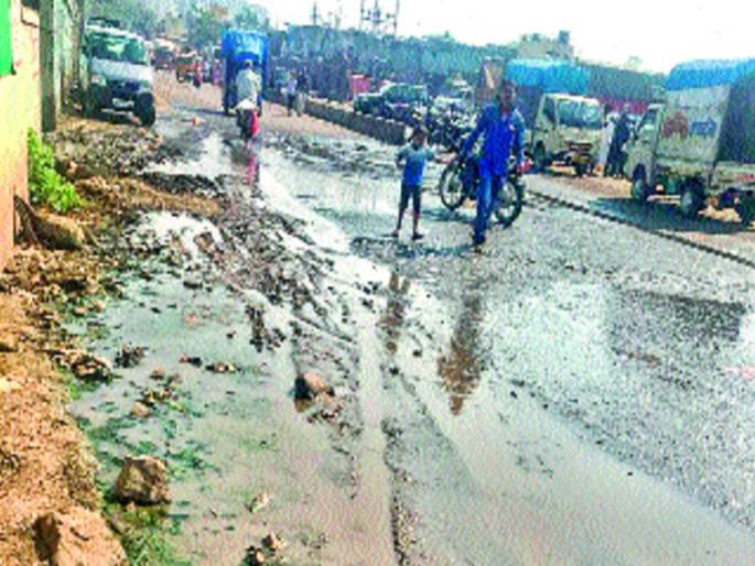 ड्रेनेजलाईन फुटल्याने सांडपाणी बाजारात