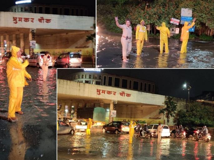 शहरात अतिवृष्टी होत असल्याने तसेच आपत्कालीन परिस्तिथी निर्माण झाली असल्याने पुणे जिह्यातील 5 तालुक्यांच्या शाळांना आणि महाविद्यालयांना आज जिल्हाधिकाऱ्यांनी सुट्टी जाहीर केली आहे. मात्र, मध्यरात्री अचानक सुरू झालेल्या पावसामुळे पुणेकरांचे मोठे हाल झाले. शहरातील नागरिक घराची वाट धरत होते, तर पाण्याचा साठा होऊ लागल्याने वाहतुकीला अडथळा निर्माण होत होता. त्यावेळी, पुण्यातील वाहतूक पोलीस आपले कर्तव्य बजावत होते. पोलिसांची उपस्थिती पावसातील नागरिकांना धीर देत होती. या मुसळधार पावसात रस्तावर पाणी साचले असताना नागरिकांना त्यांच्या घरी जाण्यास अडथळा होत होता. भूमकर चौकात व इतर चौकात पुणे वाहतूक एसीपी निलिमा जाधव आणि सहकारी पोलीस कर्मचाऱ्यांनी पाण्यात उभे राहून वाहतूक सुरळीत केली. येरवाडा येथील सादलबाद चौकात ड्युटीवर असलेल्या 'अशोक थोपटे' यांनी आपली ड्युटी संपली होती, तरी कर्तव्य बजावले. नागरिकांना त्यांच्या घरी सुरक्षित पोहचवण्यासाठी या खाकी वर्दीतल्या माणसांनी कर्तव्यदक्षता दाखवली. पोलिसांच्या या 'ऑन ड्युटी 24 तास'चे फोटो सोशल मीडियावर व्हायरल होत आहेत. तसेच, पोलिसांच्या कर्तव्याचे कौतुकही करण्यात येत आहे.