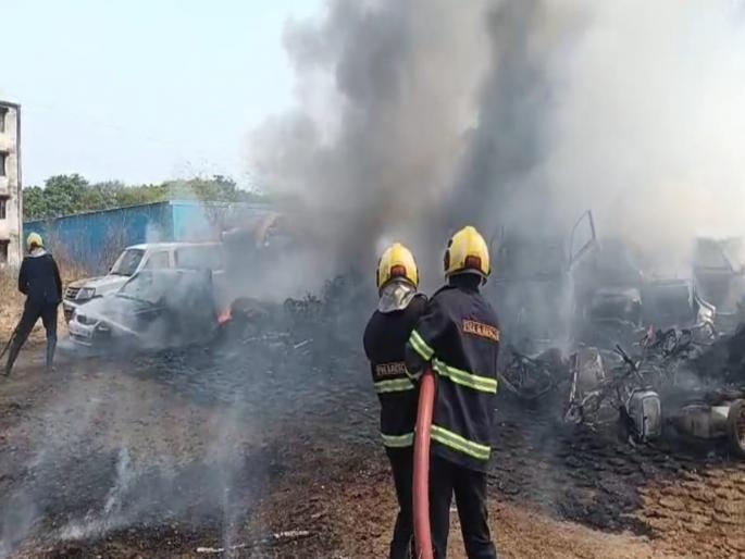 सिगारेटच्या थोटकामुळे आग? पुण्याच्या भूमी अभिलेख कार्यालय परिसरात ५० हून अधिक वाहने जळून खाक