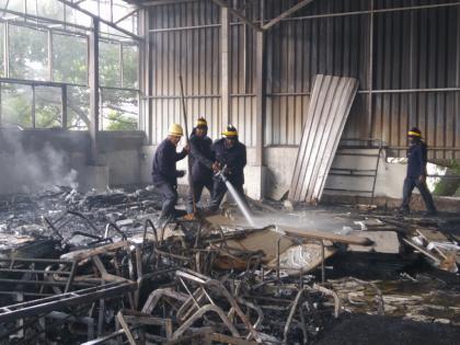 गोडावूनमध्ये लाकडी साहित्य असल्याने त्यांनी पटकन पेट घेतला आणि काही मिनिटातच संपूर्ण गोडावून पेटले़ या आगीच्या ज्वाळा इतके उंच जात होत्या की शेजारील झाडाच्या फांद्यांनीही पेट घेतला होता़