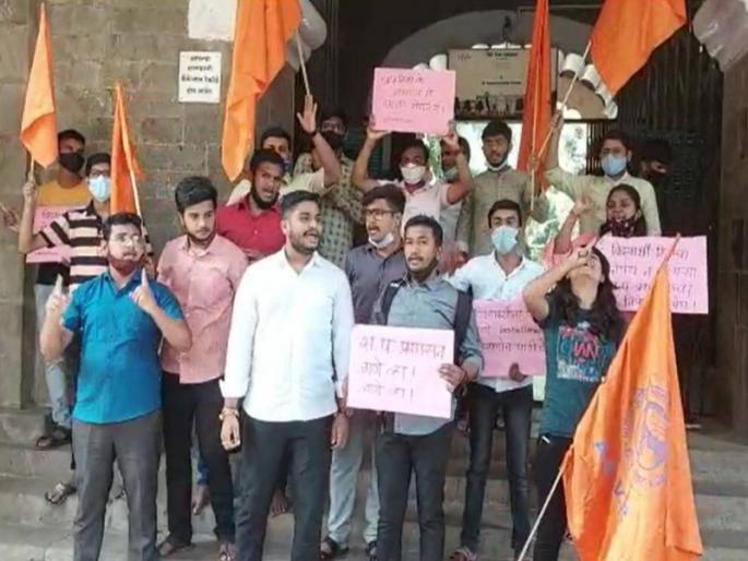 महाविद्यालयाने फी मध्ये सवलत द्यावी या मागणीसाठी घोषणाबाजी आणि झेंडे घेऊन अखिल भारतीय विद्यार्थी परिषदेने आंदोलन केले आहे.