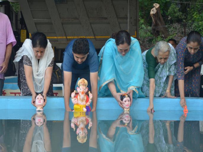 गाैरी-गणपतीचे विसर्जन झाल्यानंतर वाटली डाळ, खोबऱ्याची खिरापत वाटण्यात आली. माहेरवाशिण म्हणून घरोघरी आलेल्या गाैरींचे बुधवारी पारंपरिक पद्धतीने आवाहन करीत त्यांना पंचपक्वान्नांचा नैवेद्य दाखवून पूजन करण्यात आले. यानंतर सायंकाळी हळदी-कुंकू करण्यात आले. गुरुवारी मात्र गौरींना निरोप देण्यात आला. काही घरांमध्ये गौरींबरोबरच गणपतीचे विसर्जन करण्याची प्रथा आहे. घराण्याच्या कुळाचारानुसार गौरींचे मुखवटे हलवून विसर्जन करण्यात आले. त्यानंतर गणपतीचे विसर्जन करण्यात आले. सनईचे मंगलमय सूर आणि ढोल-ताशांच्या गजरात विसर्जन घाटांवर ठिकठिकाणी बांधण्यात आलेल्या कृत्रिम हौदामध्ये गणरायाचे विसर्जन करण्यात आले. पर्यावरणस्नेही गणेशमूर्ती विसर्जनाला नागरिकांनी चांगला प्रतिसाद दिला. महापालिकेने शहराच्या वेगवेगळ्या भागांत बांधलेल्या हौदांमध्ये, तर नदी काठाजवळ राहणाऱ्या नागरिकांनी किनाऱ्यावर ठेवलेल्या हौदांमध्ये गणेशमूर्तींचे विसर्जन केले. संध्याकाळी विसर्जन घाटांवर गर्दी झाली होती. पावसाने विश्रांती घेतल्याने विसर्जनाला आलेल्या भाविकांची गैरसोय झाली नाही.