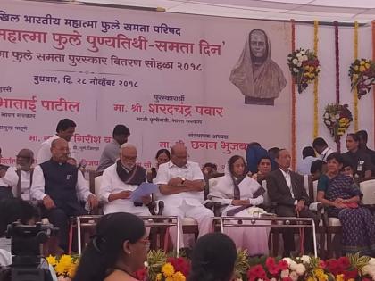 अखिल भारतीय महात्मा फुले समता परिषद यांच्यावतीने १२८ वी महात्मा फुले पुण्यतिथी समता दिन साजरा करण्यात आला. यावेळी पवार यांना महात्मा फुले समता पुरस्कार पवार यांना माजी राष्ट्रपती प्रतिभाताई पाटील यांच्या हस्ते प्रदान करण्यात आला. गंज पेठेतील महात्मा फुले यांच्या निवासस्थानी पार पडलेल्या या कार्यक्रमाला देवीसिंग शेखावत, सिक्कीमचे माजी राज्यपाल श्रीनिवास पाटील, समता परिषदेचे संस्थापक अध्यक्ष छगन भुजबळ, सीतामढीचे खासदार रामकुमार शर्मा, महापौर मुक्ता टिळक, वंदना चव्हाण, पंकज भुजबळ, समीर भुजबळ, आदी मान्यवर उपस्थित होते. पवार म्हणाले, महात्मा फुले यांच्या नावाने मिळालेल्या पुरस्काराची गोष्ट वेगळी आहे. फुले दाम्पत्यांनी ज्या सामाजिक कार्याकरिता आपले आयुष्य घालवले त्यांच्या कार्याची ओळख म्हणून देण्यात येणा-या पुरस्काराने मनात समाधानाची भावना आहे. आधुनिक विचारांचे पुरस्कर्ते म्हणून फुल्यांचे नाव घ्यावे लागेल. काळाची पावले ओळखुन त्यांनी समाजाला मार्गदर्शन केले. हयातभर समाजात समता, न्याय प्रस्थापित व्हावी याकरिता फुल्यांनी शेवटपर्यंत संघर्ष केला. साक्षरतेच्या प्रचार आणि प्रसाराचे काम त्यांनी सोडले नाही. आता मात्र मनुवादाचा विचार समाजात वाढत चालला आहे. मनुवादाचा विचार संपविण्याकरित्या ज्योतिबा आणि सावित्रीबाई फुले यांच्या विचारांची गरज आहे. हे विचार वाढविण्याची जबाबदारी प्रत्येकाची असल्याचे पवार यांनी यावेळी सांगितले.