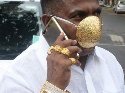 चर्चा तर होणार ना... आधी गळ्यात किलोभर दागिने नंतर सोन्याचा शर्ट आणि आता तोळ्यांचा मास्क
