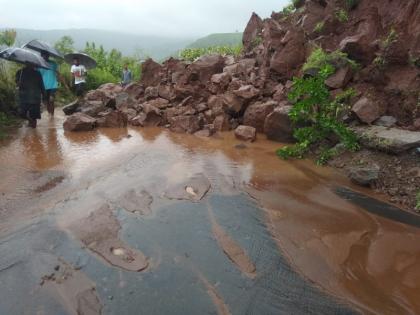मंचर- भीमाशंकर ह्या राज्य मार्गावरील पोखरी घाटामध्ये दरड कोसळल्याने वाहतूक ठप्प