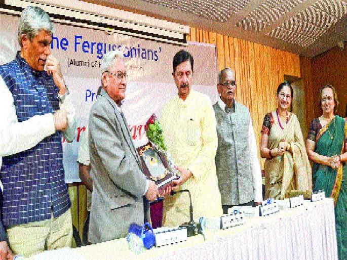पुणे : जगाच्या पाठीवर माणूस कुठेही गेला तरी महाविद्यालयात पाऊल ठेवतो तेव्हा त्याला आनंदच होतो. फर्ग्युसन महाविद्यालयात प्रवेश केला तेव्हा दहावीचा निकालही लागलेला नव्हता. विज्ञान शाखेला प्रवेश घेतला. सुरुवातीचे काही महिने इंग्रजीत काय शिकविले जात आहे ते कळले नाही... अशी मिश्किल टिप्पणी विधान परिषदेचे सभापती रामराजे नाईक निंबाळकर यांनी केली. ‘संस्थेने जे बाळकडू दिले त्यावर मी इथंपर्यंत पोहोचू शकलो. राज्याच्या विधानसभेत सर्वात जास्त व्यक्ती या फर्ग्युसनच्याच असल्याचे त्यांनी अभिमानाने सांगितले.‘द फर्ग्युसोनियन्स’ या माजी विद्यार्थी संस्थेच्या वतीने ज्येष्ठ शिक्षणतज्ज्ञ डॉ. राम ताकवले यांच्या हस्ते रामराजे नाईक-निंबाळकर यांना प्रतिष्ठेच्या ‘फगर््युसनगौरव’ पुरस्काराने सन्मानित करण्यात आले. त्या वेळी ते बोलत होते. या वेळी लष्करी वैद्यकीय महाविद्यालयाच्या अधिष्ठाता मेजर जनरल माधुरी कानिटकर, प्राज इंडस्ट्रीचे प्रमोद चौधरी, ज्येष्ठ अभिनेत्री सुहास जोशी आणि ज्येष्ठ सामाजिक कार्यकर्ते डॉ. अनिल अवचट यांना ‘फर्ग्युसन अभिमान’ पुरस्कार देण्यात आला.तसेच फर्ग्युसन महाविद्यालयात शिक्षण घेत असलेली आंतरराट्रीय कीर्तीची क्रीडापटू शिवानी स्वरूप इंगळे आणि जागतिक स्तरावरची जिम्नॅस्टिकपटू आकांक्षा बुचडे दोघींना ‘फर्ग्युसन अभिमान’ पुरस्कारातील ‘उगवते तारे’ म्हणून घोषित करण्यात आले.याप्रसंगी प्रमुख पाहुणे म्हणून सावित्रीबाई फुले पुणे विद्यापीठाचे कुलगुरू डॉ. नितीन करमळकर तसेच ‘द फर्ग्युसोनियन्स’चे चेअरमन विजय सावंत आणि अध्यक्ष यशवंत मेहेंदळे उपस्थित होते.शिक्षक, राजकारण, सभापतिपद सर्व काही मिळवले आहे... आता पुढे काय मिळेल हा वादाचा मुद्दा आहे. पण एक आहे मंत्र्यापेक्षा सभापतिपदच जास्त आवडते. ‘बस खाली, जा बाहेर’ एवढच करावे लागत असल्याने लोकशाहीत हे पद एन्जॉय करीत आहे. आता काही मिळविण्याची इच्छा राहिलेली नाही... महाविद्यालयात क्रिकेटचे ‘कॅप्टन’पद भूषविलेले रामराजे नाईक निंबाळकर यांनी राजकीय फटकेबाजीतून ‘फर्ग्युसोनियन्स’ असल्याची चुणूक दाखवून दिली.खासगीकरण आणि स्वायत्तता ही दोन धोरण देशाच्या शिक्षण व्यवस्थेत राबविली जात आहेत. इतर शिक्षण संस्थांच्या स्पर्धेत टिकून राहायचे असेल तर बदलत्या काळाची पावले ओळखून डेक्कन एज्युकेशन सोसायटीला याचा विचार करावा लागेल, सत्तेत आहे तोपर्यंत ठरवून घ्या... अशी सूचक टिप्पणीही त्यांनी केली.कुलगुरूंचे तुकाराम मुंढे यांना साकडेसावित्रीबाई फुले पुणे विद्यापीठात शिक्षण घेणाºया विद्याथर््यांची संख्या वाढली आहे. १९९१९-१९९२ मध्ये विद्यापीठामधून बससेवा देण्यात आली होती, त्याचा फायदा विद्यार्थ्या