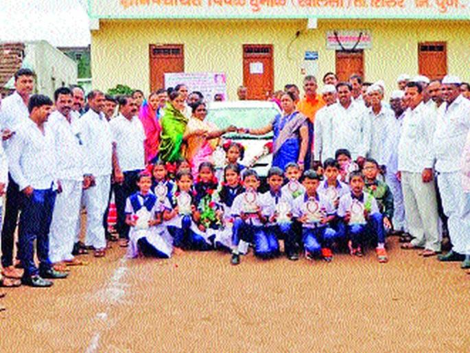 पिंपळे खालसा ग्रामस्थांचा शाळेच्या गुणवत्तेसाठी शिक्षकांच्या योगदानासाठीची हे भेट राज्यात कात्ौुकाचा विषय झाली आहे. येथील शाळेतील विद्यार्थी शिष्यवृत्ती परीक्षेत उत्तीर्ण होण्याची परंपरा १९७१ पासून कायम आहे. दरवर्षी या शाळेमध्ये मोठ्या प्रमाणावर याअगोदर चौथीचे, तर गेल्या काही वर्षांपासून पाचवीचे विद्यार्थी शिष्यवृत्तीमध्ये झळकत आहेत. यात उत्तीर्ण होणाऱ्या मुलांच्या पालकांच्यावतीने शिक्षकांना लॅपटॉप, फ्रीज व इतर भेटवस्तू देण्यात येत होत्या. मात्र २०११ पासून शिष्यवृत्तीसाठी मार्गदर्शन करणाºया शिक्षकांना दुचाकी भेट देण्यात येत होती. शिष्यवृत्तीच्या यशाच्या परंपरा वाढल्याने ग्रामस्थांनी २०१४ पासून सर्व पालकांच्यावतीने शिक्षकांना तीन चारचाकी वाहने भेट देण्यात आलेली आहेत.यावर्षी शाळेचे १९ विद्यार्थी शिष्यवृत्ती परीक्षेत उत्तीर्ण झाले असून त्यापैकी तीन विद्यार्थी राज्य गुणवत्ता यादीमध्ये झळकले आहेत. एका विद्यार्थ्याची जवाहर नवोदय विद्यालयासाठी निवड झाली आहे. या सर्व विद्यार्थ्यांच्या पालकांच्यावतीने मार्गदर्शकशिक्षिका ललिता अशोक धुमाळ यांना चारचाकी भेट दिली.याप्रसंगी सरपंच राजाराम धुमाळ, उपसरपंच संदीप सुरसे, शालेय व्यवस्थापन समिती अध्यक्ष ज्ञानेश्वर धुमाळ, शहाजी धुमाळ, संपत धुमाळ, विशाल धुमाळ, रमेश धुमाळ, समीर धुमाळ, शिवाजी धुमाळ, संतोष धुमाळ, पुष्पा धुमाळ, मंगल धुमाळ, शुभांगी धुमाळ, गुलाबराव धुमाळ, अप्पासाहेब धुमाळ यांच्यासह सर्व विद्यार्थी, पालक उपस्थित होते.सकाळी ८ ते रात्री ९ पर्यंत शाळा : १९७१ पासून पिंपळे खालसा जिल्हा परिषद शाळेची शिष्यवृत्ती परीक्षेची परंपरा कायम राहण्यासाठी व जास्तीत जास्त मुले शिष्यवृत्तीमध्ये गुणवत्ता यादीत झळकण्यासाठी जून ते आॅक्टोबरपर्यंत सकाळी ८ ते सायंकाळी ६ वाजेपर्यंत व आॅॅक्टोबरनंतर सकाळी ८ ते सायंकाळी ९ पर्यंत विद्यार्थ्यांना ज्ञानदानाचे काम केले जाते. पालकांचा विश्वास असल्याने परीक्षेत आजपर्यंत ४३२ विद्यार्थी यशस्वी होत असल्याचे मार्गदर्शकशिक्षिका ललिता धुमाळ यांनी सांगितले.विद्यार्थ्यांना भेटगुणवंत विद्यार्थ्यांच्या पालकांनी मार्गदर्शक शिक्षिकेस चारचाकी भेट देऊन सन्मानित करण्यात आले, तर शिष्यवृत्ती परीक्षेत राज्य गुणवत्ता यादीमध्ये आलेल्या हर्षदा शितोळे, ओम धुमाळ, गुरुदत्त धुमाळ या विद्यार्थ्यांनादेखील मार्गदर्शकशिक्षिका ललिता धुमाळ यांच्यावतीने घड्याळ भेट देऊन सन्मानित केले.