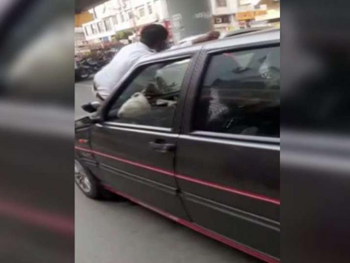 नागरिकांचा आरडाओरडा काही तरुणांनी केलेल्या पाठलागानंतरही सुमारे पाऊण किलोमीटर धावत्या कारच्या बोनेटवर जीव मुठीत धरुन बसले होते. नागरिकांची गर्दी झाल्याने क्रांतीवीर चाफेकर चौकात मोटारचालकाने गाडी थांबवली. मात्र, यात वाहतुक पोलिसाच्या गुडग्याच्या लिगामेंटला दुखापत झाली.