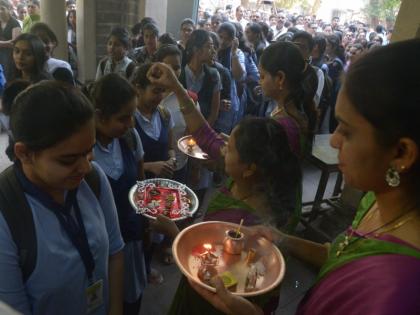 पुणे शहरात बारावीची परीक्षा सुरळीत; औक्षण करून, फुले देऊन विद्यार्थ्यांचे स्वागत