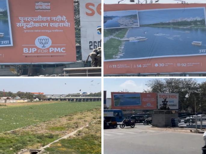 भाजपने लावलेल्या बॅनरवर नदीचे दोन फोटो देण्यात आले आहेत. एका फोटोत 'आज' असे लिहून बिकट अवस्थेतील नदी दाखवली आहे. तर दुसऱ्या फोटोत 'उद्या' असे लिहून सुशोभीकरण झाल्यावरच्या नदीचे चित्र दाखवण्यात आले आहे.