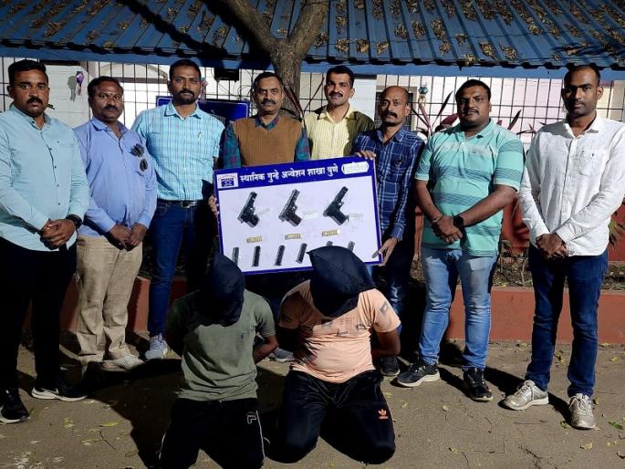 राजगुरुनगर (पुणे) : खेडच्या ग्रामीण भागात ३ गावठी पिस्तुलासह जिवंत काडतुसे, ६ मॅकझीनसह तब्बल ३० जिवंत काडतुसे जप्त करीत पोलिसांनी दोन आरोपींना जेरबंद केले आहे.आकाश आण्णा भोकसे (वय २३ ), महेश बाबाजी नलावडे हे (वय २३ ) हे दोघेही राहणार कुरकुंडी, ता. खेड अशी अटक केलेल्या आरोपींची नावे आहेत.