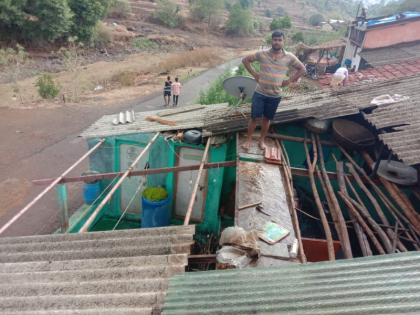 राजगुरूनगर: खेड तालुक्यातील पश्चिम भागात(सोमवारी दि.११) रोजी दुपारी तीनच्या सुमारास जोरदार चक्रीवादळ झाले. वादळांतर तुरळक पावसाच्या सरी कोसळल्या. मात्र, चक्रीवादळामुळे मंदोशी, शिरगाव, टोकावडे, मोरोशी, कारकुडी, धुवोली, वांजळे, पाभे आदी परिसरात वादळी पाऊस झाला. यात घरांसह शेतातील पिकांचे मोठे नुकसान झाले. जावळेवाडी चारही बाजूने डोंगरात असल्याने चक्रीवादळात शेतकऱ्यांच्या घरांचे मोठे नुकसान झाले.