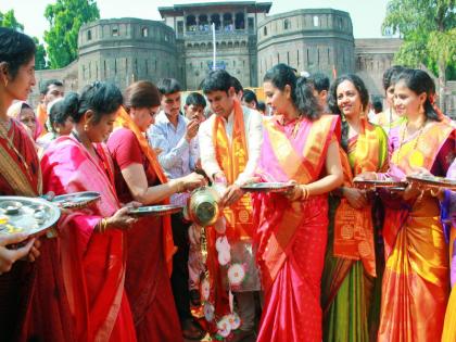 पुण्यातील शनिवारवाडा प्रांगणात 51 फुटी स्वराज्यगुढी उभारुन ढाेल-ताशांच्य गजरात शिवराज्याभिषेक दिन साजरा करण्यात अाला.
