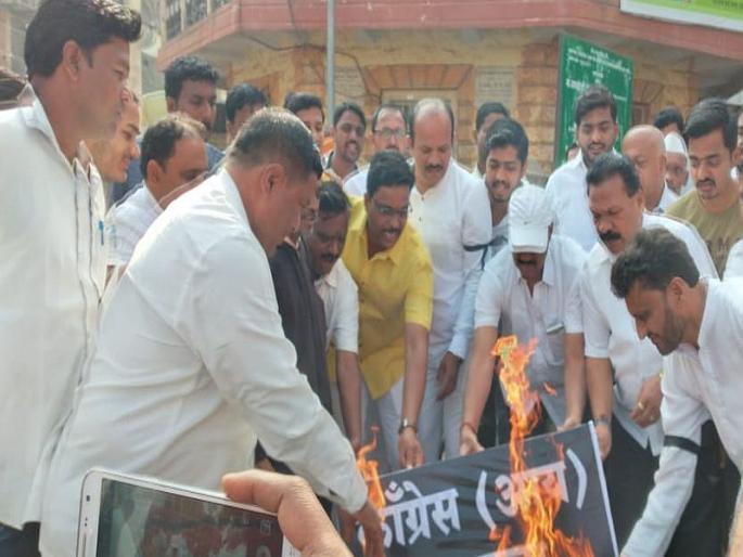 पुणे - राज्यात मंत्रीमंडळाचा विस्तार काही मिनिटांवर येऊन ठेपलेला असताना मंत्रिपद न मिळालेल्या नाराजांच्या समर्थकांनी निषेध करण्यास सुरुवात केली आहे. पुणे जिल्ह्यातील भोरचे काँग्रेस पक्षातील आमदार संग्राम थोपटे यांना मंत्रिपद न मिळाल्याने त्यांच्या समर्थकांनी काँग्रेसचे नाव असलेला फलक जाळून निषेध केला आहे.