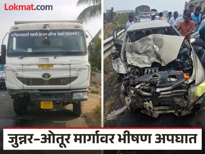 प्राथमिक माहितीनुसार, जुन्नरहून ओतूरकडे येणारा हायवा ट्रक (क्र. MH 14 KQ 0812) आणि ओतूरहून जुन्नरकडे निघालेली होंडा सिटी (क्र. MH 12 FF 6423) पांगरीमाथा येथे एकमेकांना जोरात धडकले. धडकेची तीव्रता इतकी जबरदस्त होती की, कारचा पुढील भाग पूर्णपणे चिरडला गेला. या अपघातात अनंता गवारी, विजय खारतोडे (वय ४८) आणि तुषार भीमराव कोरडे (वय ३५, सर्व रा. जुन्नर) जखमी झाले. गवारी यांना पुण्याकडे उपचारासाठी नेत असताना त्यांचा मृत्यू झाला. विजय खारतोडे यांची प्रकृती गंभीर असून, तुषार कोरडे यांना किरकोळ दुखापत झाली आहे.