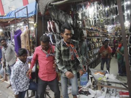 जंगली महाराज रस्त्यावर कपडे, खाद्यान्न, पाणीपुरी विकत असलेल्यांना लक्ष्य करण्यात आले. त्यांचे स्टॉल उधळून लावण्यात आले. काही जणांना धक्काबुक्कीही करण्यात आली. पादत्राणांच्या दुकानांनाही या आंदोलनाचा फटका बसला.