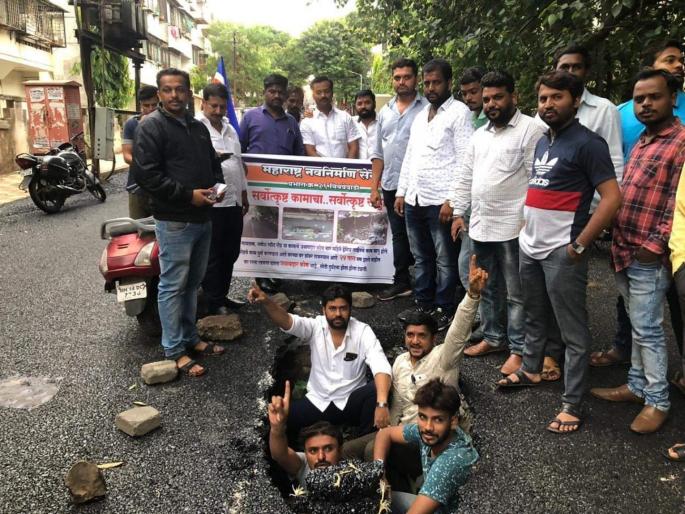 पुणे : बिबवेवाडी येथील रस्त्याच्या मध्ये डांबर खचून पडलेल्या खड्यात बसून महाराष्ट्र नवनिर्माण सेनेच्यावतीने अनाेखे आंदाेलन करण्यात आले. या भागातील ड्रेनेजचे काम दाेन दिवसांपूर्वी पूर्ण करण्यात आले हाेते. त्यानंतर रस्ता डांबर टाकून पुर्ववत करण्यात आला हाेता. परंतु पुण्यात झालेल्या पहिल्याच पावसात हा रस्ता खचल्याने महापालिकेचा ढिसाळ कारभार समाेर आला आहे. त्यामुळे या विराेधात मनसे स्टाईल आंदाेलन करण्यात आले.