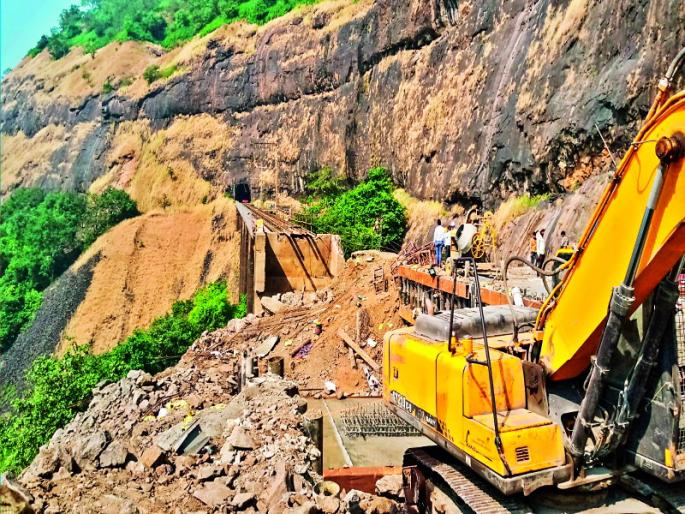 मुंबईला जाणाऱ्या खचलेल्या रेल्वेमार्गाचे काम हे वेगाने सुरू