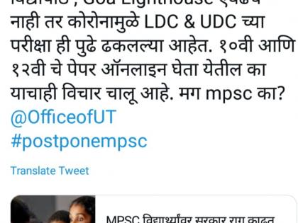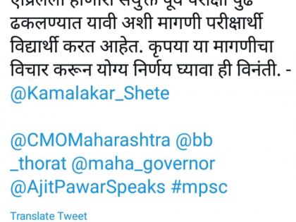 राज्यात कोरोना बधितांची संख्या वाढत आहे. अनेक विद्यार्थ्यांना कोरोनाची बाधा झाली असून, काही परिक्षार्थींचा कोरोनामुळे मृत्यू झाला आहे. मध्यप्रदेश, बिहारने विविध खात्यांच्या परीक्षा पुढे ढकलल्या आहेत. केंद्रीय जल मार्ग विभागाने नॅव्हीगेशनल असिस्टंट आणि टेक्निशियन (इलेक्ट्रॉनिक) पदाच्या परीक्षा पुढे ढकलल्या आहेत. त्यामुळे एमपीएससी परीक्षा पुढे ढकलण्याची मागणी विद्यार्थी करीत आहेत. एमपीएससी समन्वय समितीने कोरोनामुळे बहुतांश विद्यार्थ्यांची मानसिकता परीक्षा पुढे ढकलण्याची असल्याचे निवेदन राज्य सरकारला दिले आहे. आता विद्यार्थ्यांनी समाज माध्यमावर हॅश टॅग पोस्टपोन एमपीएससी अशी मोहीम सुरू केली असून त्याला चांगला प्रतिसाद मिळत आहे.