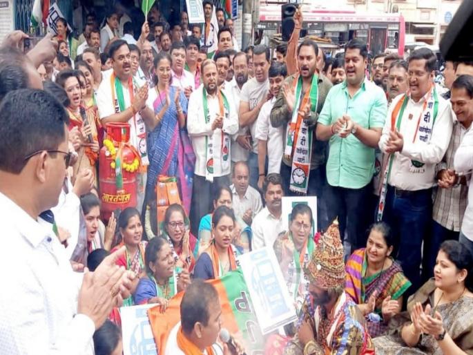 पुणे : पुण्यात मोदी सरकारने केलेल्या अन्यायकारक गॅस दरवाढीविरोधात शनिपार मंदीर ( मंडई जवळ) येथील हनुमानास साकडे घालून व महाआरती करून प्रतीकात्मक निषेध आंदोलन करण्यात आले. यावेळी खासदार सुप्रिया सुळे आणि राष्ट्रवादीचे पदाधिकारी उपस्थित होते. मोदी सरकार हाय हाय अशा घोषणाही यावेळी देण्यात आल्या. जयदेवी जयदेवी जय कमळाबाई अशी आरती प्रवक्ते प्रदीप देशमुख यांनी सादर केली आहे. सुप्रिया सुळे यांनी सदर आंदोलन यापुढे संपुर्ण महाराष्ट्रात ही महागाईची आरती म्हणून पक्षााच्या वतीने गॅस व इंधन दरवाढीची आंदोलने होतील असे जाहीर केले.
