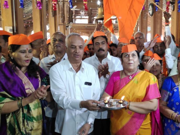 पुणे : अयाेध्येत राम मंदिर लवकरात लवकर बांधावे या मागणीसाठी राज्यातील शिवसैनिक अयाेध्येत दाखल झाले अाहेत. शिवसेना प्रमुख उद्धव ठाकरे अाणि संपूर्ण ठाकरे परिवार अाज अयाेध्या दाैऱ्यावर अाहे. त्यांना शुभेच्छा देण्यासाठी राज्यभरात शिवसेनेचे कार्यकर्ते राम मंदिरात अारती करत अाहेत. पुण्यातील तुळशीबागेतील राम मंदिरात अामदार नीलम गाेऱ्हे यांनी अारती केली. तसेच श्रीराम लिहिलेल्या पेढ्यांचा प्रसादही दाखवला. यावेळी शिवसेनेचे पदाधिकारी व कार्यकर्ते माेठ्या संख्येने उपस्थित हाेते.