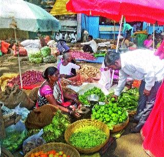चाकण : खेड कृषी उत्पन्न बाजार समितीच्या चाकण येथील महात्मा फुले मार्केट यार्डमध्ये कांद्याचे भाव स्थिर राहिले असून, बटाट्याचे भाव निम्म्याने घटले आहेत. बाजारात कांद्याची आवक ५५० क्विंटल होऊन प्रतिक्विंटल ११०० रुपये भाव मिळाला. मागील आठवड्यात कांद्याला ११०० रुपये भाव होता. मागील आठवड्यात कांद्याचे भाव वाढल्याने शेतकऱ्यांच्या आशा पल्लवित झाल्या होत्या; पण ते स्थिरच राहिले. शिवाय बटाटा निम्म्याने घटल्याने शेतकऱ्यांमध्ये नाराजी होती. त्यातच आणखी भर म्हणजे नोटा बदलांमुळे बाजारात मंदीचे सावट दिसून आले. वाटाणा, वांगी, भेंडी, दोडका, गवार, शेवगा या भाज्यांचे भाव तेजीत राहिले. हिरव्या मिरचीचे भाव स्थिर राहून मिरचीला ८० ते १०० रुपये प्रतिदहा किलोस भाव मिळाला.शेतमालाची एकूण आवक व बाजारभाव पुढीलप्रमाणे : कांदा - एकूण आवक - ५५० क्विंटल. भाव क्रमांक १ - ११०० रुपये, भाव क्रमांक २ - ८०० रुपये, भाव क्रमांक ३ - ७०० रुपये. बटाटा - एकूण आवक ७०० क्विंटल. भाव क्रमांक १ - ११०० रुपये, भाव क्रमांक २ - ८०० रुपये, भाव क्रमांक ३ - ६०० रुपये. भुईमूग शेंग (जळगाव) व भुईमूग शेंगची (बंदूक) आवक बाजारात झाली नाही.लसूण - एकूण आवक ४ क्विंटल. भाव क्रमांक १ - १२०० रुपये, भाव क्रमांक २ - ११०० रुपये, भाव क्रमांक ३ - ९०० रुपये.फळभाज्या : चाकण येथील फळभाज्यांच्या बाजारात एकूण आवक डागांमध्ये व प्रती १० किलोंसाठी डागांना मिळालेले भाव कंसात पुढीलप्रमाणे : हिरवी मिरची- २५५ पोती ( ८० ते १०० ) टोमॅटो - ४०० पेट्या ( ७० ते १२० रुपये ), कोबी - १९० पोती (३० ते ५० रुपये), फ्लॉवर -२२० पोती ( ८० ते १२० रुपये ), वांगी - २५० पोती ( १५० ते २५० रुपये), भेंडी- १८० पोती (२०० ते २५० रुपये), दोडका - ४५ पोती ( २०० ते ३०० रुपये ), कारली -२२५ डाग ( १०० ते १५० रुपये), दुधीभोपळा -१७० पोती ( ५० ते १०० रुपये), काकडी - १२५ पोती (८० ते १०० रुपये), फरशी -८९ पोती (१५० ते २०० रुपये), वालवर - ४९ डाग ( २५० ते ३००), गवार - ९५ डाग (३०० ते ४०० रुपये), ढोबळी - २३२ डाग (१०० ते २०० रुपये ), चवळी -१२० डाग (१०० ते २०० रुपये), वाटाणा - ३८ पोती (५०० ते ६०० रुपये) शेवगा - ४० डाग (४०० ते ५०० रुपये).