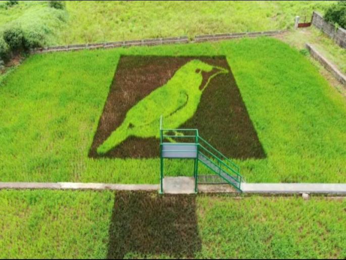 पुणे : पुण्यातील डोणजे येथे सिंहगड पायथ्याजवळ श्रीकांत इंगळहळीकर यांनी भातरोपातून 'जेरडन्स लीफबर्ड' या दुर्मिळ पक्ष्याचे चित्र केले आहे. शेतात वेगवेगळी रंगीत पाने असलेल्या भातरोपांची हाताने लावणी करून प्रचंड मोठी चित्रे निर्माण करण्याची अवघड कला जपानी शेतक-यांनी गेली २८ वर्षे जोपासली आहे. ही कला ५ वर्षांपूर्वी सिंहगड पायथ्याच्या शेतात भारतात सर्वप्रथम विकसित केली.
