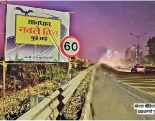 सावधान नवले ब्रीज पुढे आहे... तीव्र स्वरुपाचा उतार आणि उडणाऱ्या कावळ्याचादेखील फोटो