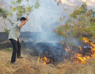 पुणे : सयाजी शिंदेंची तत्परता ; डाेंगराला आग लागल्याचे कळताच गाडी थांबवून विझवली आग