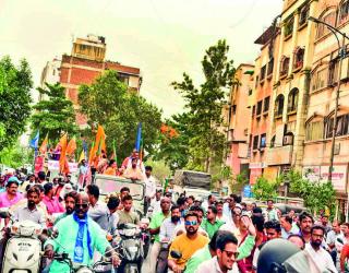 पुणे : खासदारांच्या रॅलीतील ‘विना हेल्मेट’ चालकांवर वाहतूक पोलीस मेहरबान